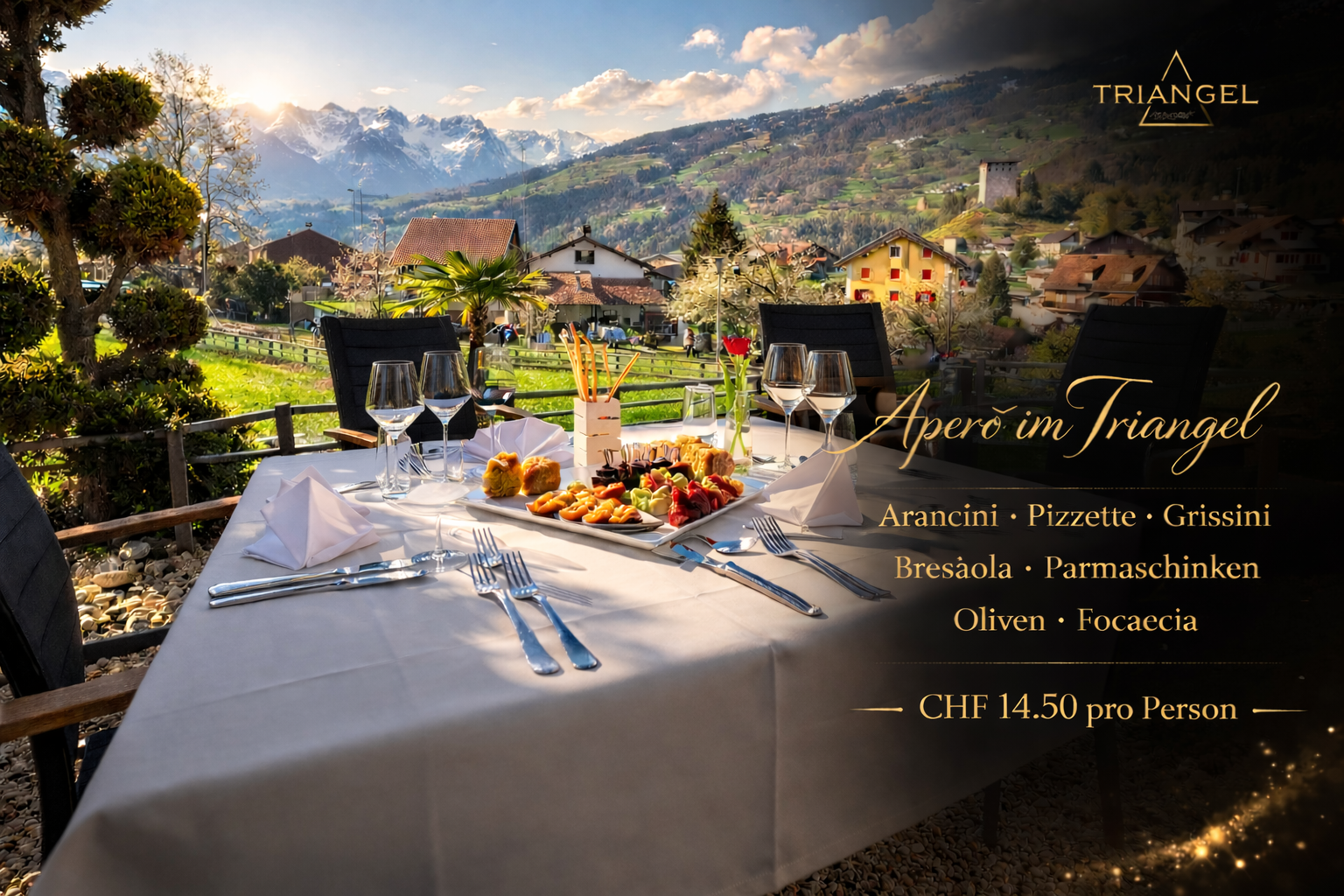 Möchten Sie die Triangel-Qualität auch zu Hause geniessen? Alle Gerichte sind von Dienstag bis Sonntag auch als TakeAway erhältlich. Rufen Sie uns einfach an: 081 650 10 00.